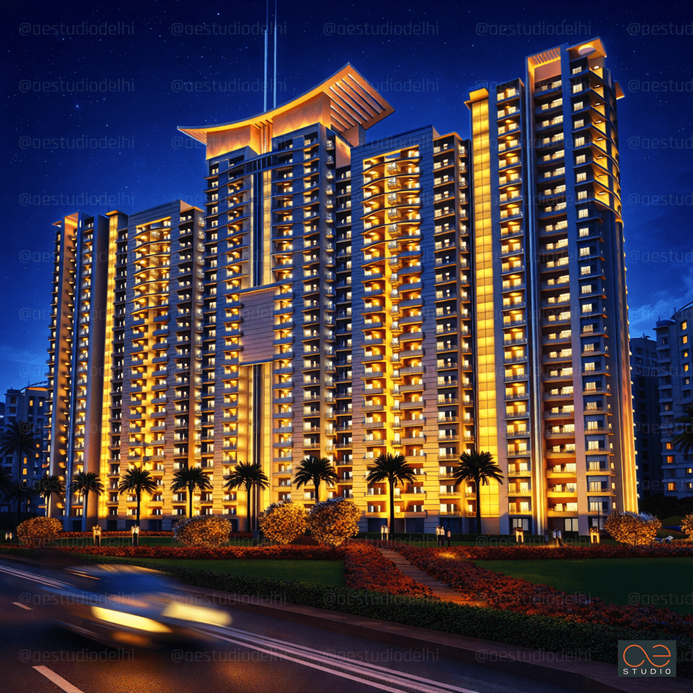 “On the Bhiwadi-Alwar Highway, you cannot miss it. Staggered towers that refuse to form a wall. A podium green that cools the air and gathers the community. Wing-like crowns lit against the night sky. And 1-BHK studios and 2-BHK edge units, each with its place, each with its view. This is not just housing. It is a landmark.”