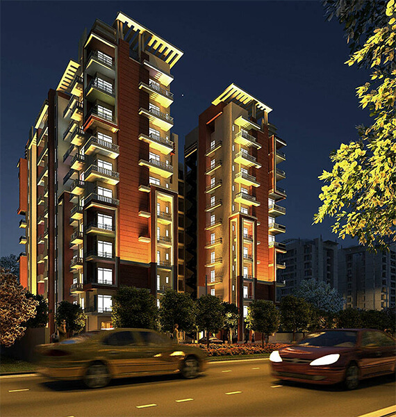 Located at Rajnagar Extension, Ghaziabad. Riviera Heights constitutes a single tower( G+ 12) stories high. To maximize the site potential a single tower with 12 flats to a floor has been designed.