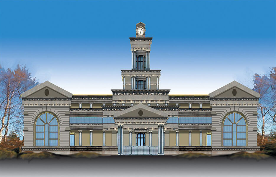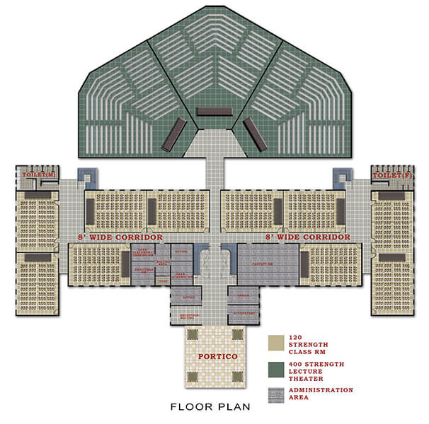 The building was designed to act as flagship building for the entire campus. British Colonial architecture with central clock tower was choosen to generate a sense of grandeur and act as a focal point for the entire campus.